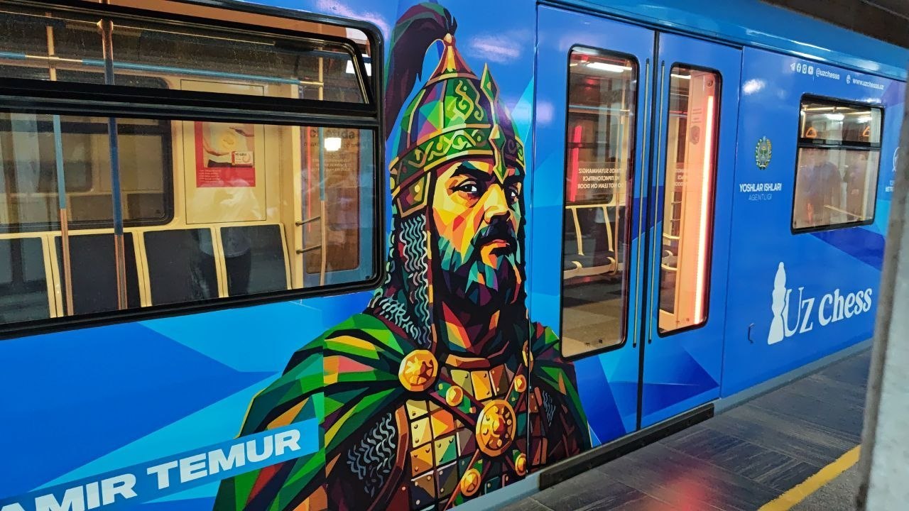 9 апреля в ташкентском метро запустили поезд, оформленный к 690 летию Амира Темура.